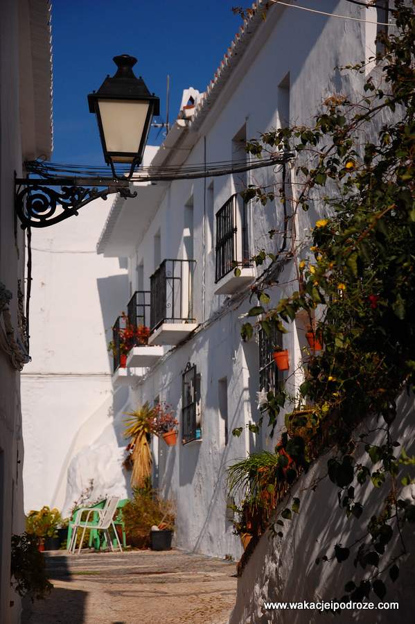 Widziałem już sporo „białych” miast przytulonych do górskich zboczy, ale to Frigiliana została w mojej pamięci najdłużej. Mimo deszczu, który zaczął siąpić (pierwszy raz od blisko tygodnia, a był to luty) spędziliśmy tu większość dnia. Z każdą chwilą, z każdą wąską, obsypaną kwiatami, brukowaną uliczką coraz bardziej zauroczeni.