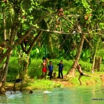 Po zaspokojeniu pierwszego głodu warto rozejrzeć się po okolicy. A jest co oglądać. Rzeka Loboc wije się powoli i za każdym zakrętem odsłania nowe widoki. W takich okolicznościach przyrody obiad na prawdę smakuje lepiej i nie żebym ujmował coś kucharzom ;-) A żeby było jeszcze przyjemniej i romantyczniej to do kotleta przygrywa najprawdziwszy muzyk i robi to bardzo przyzwoicie. Jednym słowem pływające restauracje na Loboc to bardzo fajny pomysł na popołudniowy obiad.