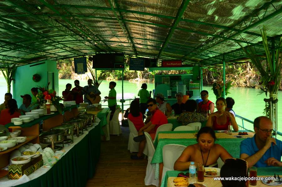 Po zaspokojeniu pierwszego głodu warto rozejrzeć się po okolicy. A jest co oglądać. Rzeka Loboc wije się powoli i za każdym zakrętem odsłania nowe widoki. W takich okolicznościach przyrody obiad na prawdę smakuje lepiej i nie żebym ujmował coś kucharzom ;-) A żeby było jeszcze przyjemniej i romantyczniej to do kotleta przygrywa najprawdziwszy muzyk i robi to bardzo przyzwoicie. Jednym słowem pływające restauracje na Loboc to bardzo fajny pomysł na popołudniowy obiad.