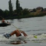 Na szczęście wyciąg w Ślesinie jest zdalnie sterowany. Instruktor z pilotem w dłoni idzie równolegle do toru podtapiania początkującego adepta wakeboardingu i udziela mu wskazówek. Jeśli natomiast taki adept, na przykład ja, lądując pod wodą nie będzie chciał się puścić :) po prostu wyłącza wyciąg.